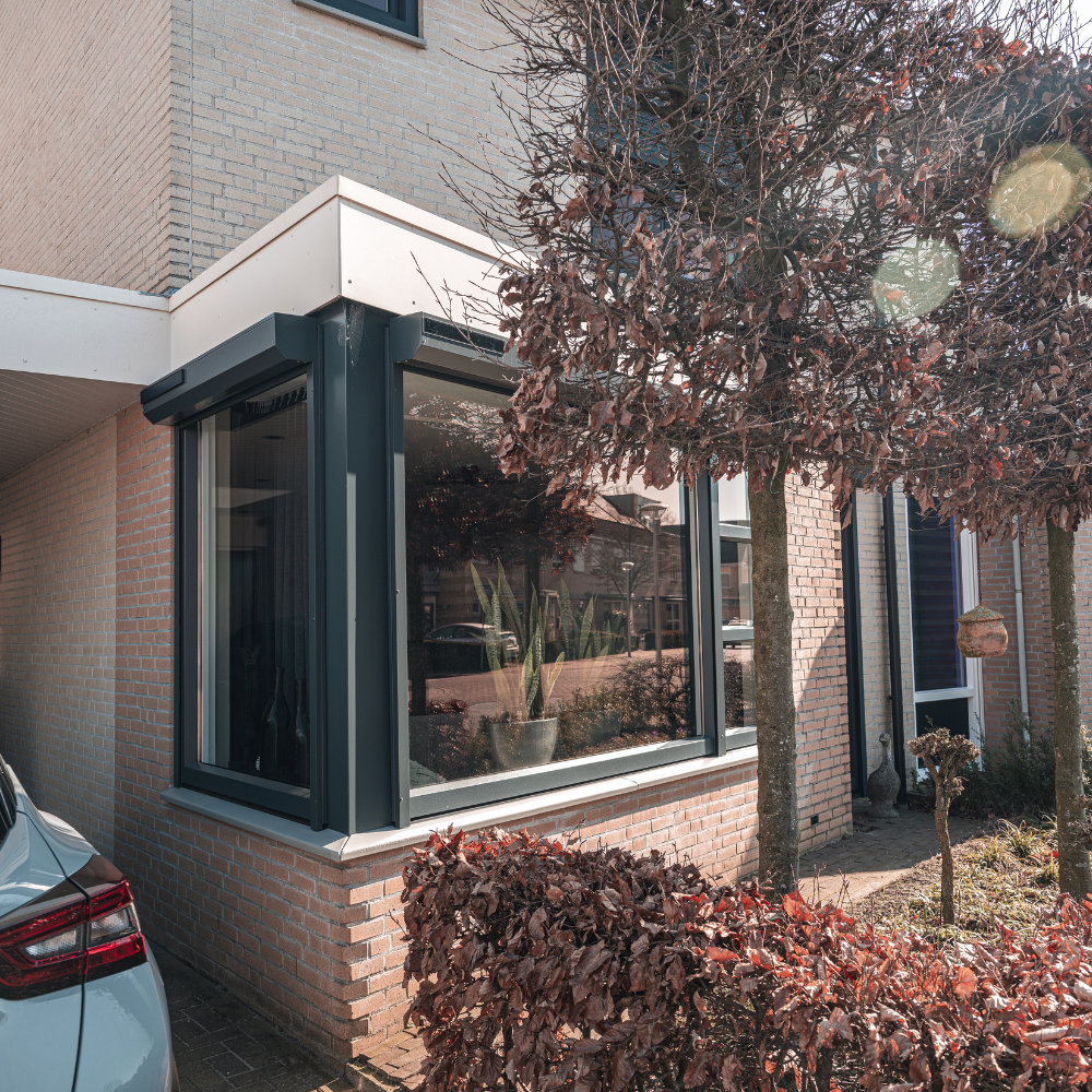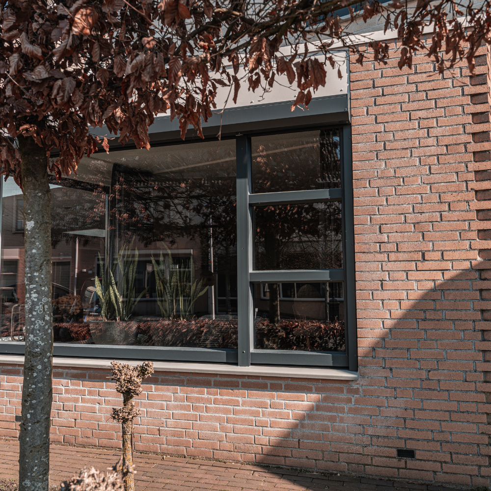 De combinatie van donkere kozijnen met de bestaande gevel geeft de woning een moderne en krachtige uitstraling. Alles sluit mooi op elkaar aan, zowel technisch als visueel.