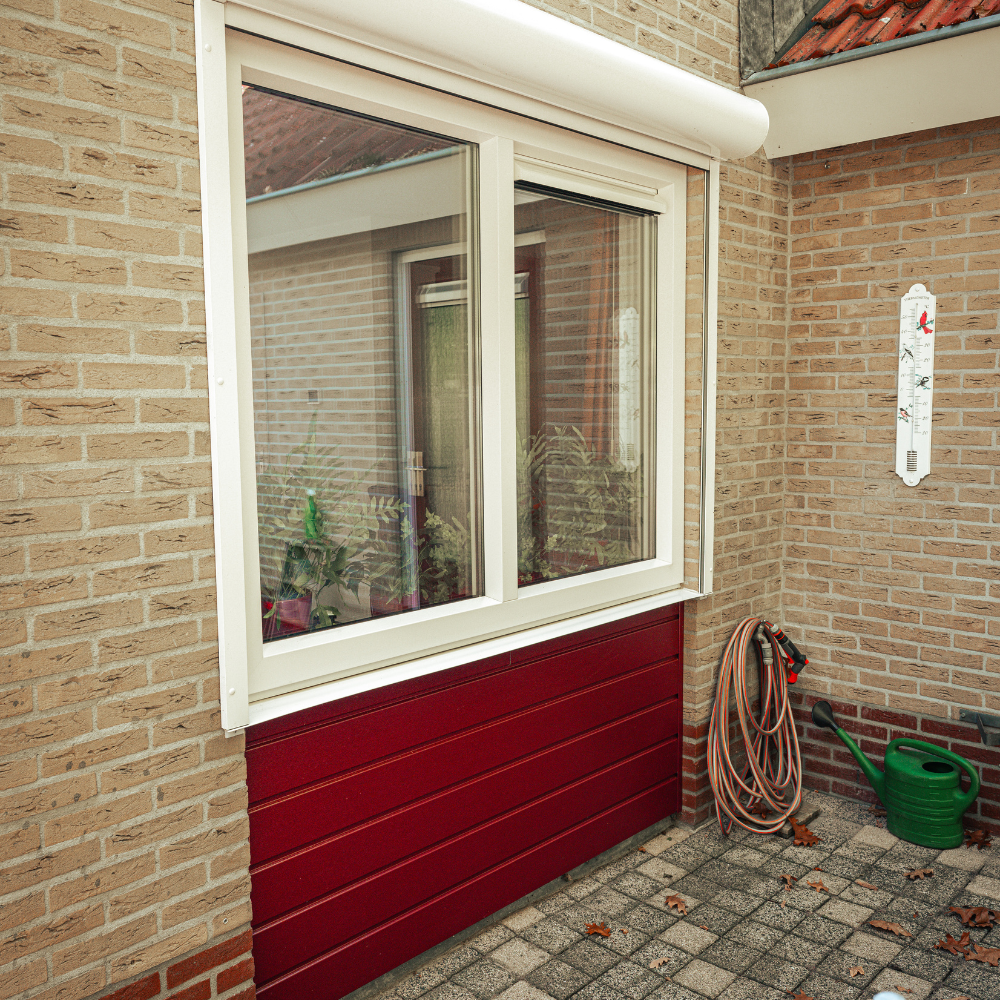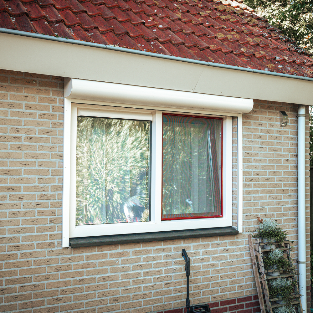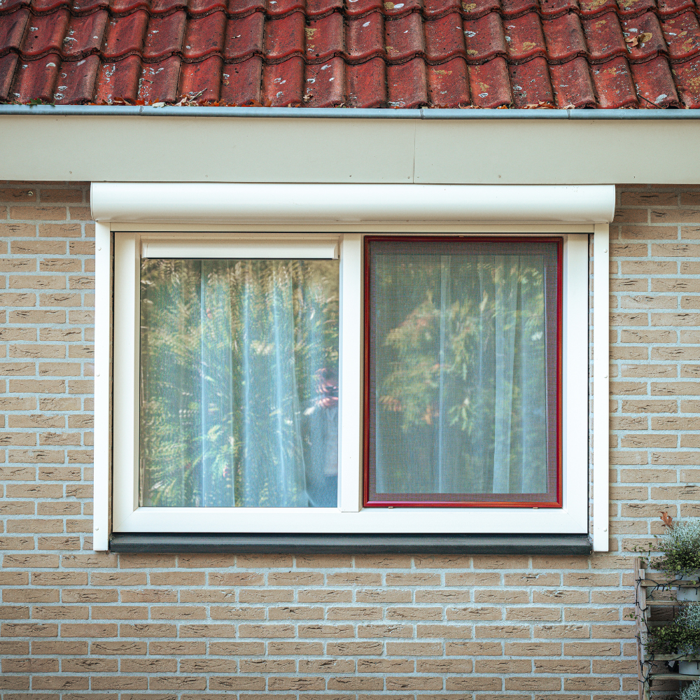 De klant heeft bewust gekozen voor een rode kleurstelling, die niet alleen terugkomt in de horren, maar ook in de Keralit afwerking onder een van de kozijnen. Dit geeft de woning een karaktervolle en verzorgde uitstraling, passend bij de stijl van het huis.