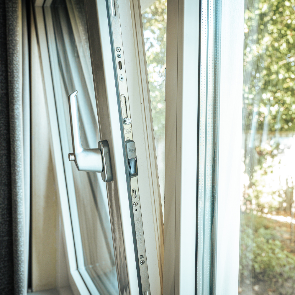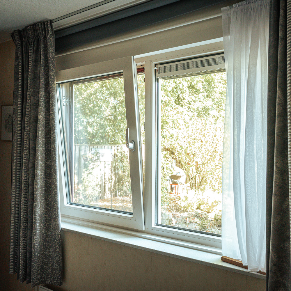 Een deel van de kozijnen is uitgevoerd met draai-kiepramen, wat zorgt voor extra ventilatiemogelijkheden en gebruiksgemak. Deze ramen zijn bovendien voorzien van horren, zodat de woning goed geventileerd kan worden zonder last te hebben van insecten. Ideaal met het voorjaar en de zomer in aantocht.